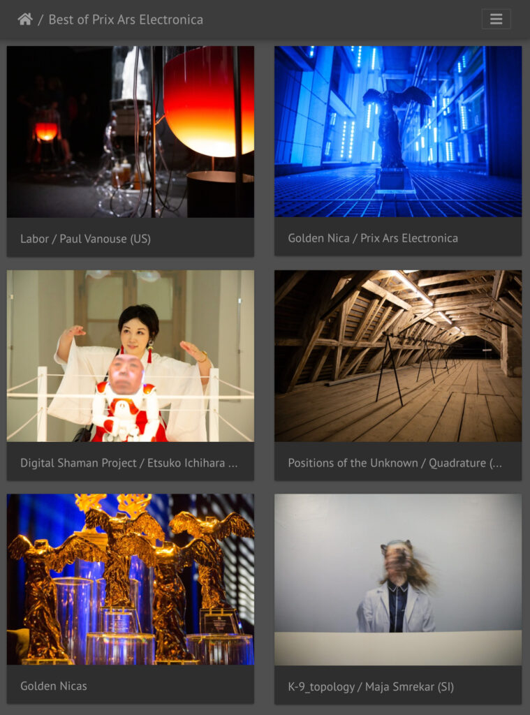 歴代の錚々たるグランプリ作品(Golden Nica)が並ぶなか、自分が受賞したのはグランプリではなく栄誉賞だったので、なぜこの並びに入れて頂いてるのか不思議なのですが、